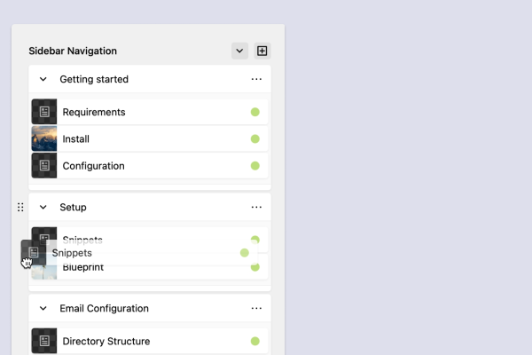 A plugin for Kirby CMS that enables flexible organization of navigation items into groups for the frontend. While the structure is based on the site hierarchy (children), it can be fully customized manually.