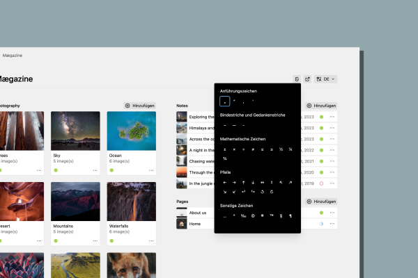 Typo & Paste simplifies access to special characters in Kirby CMS and ensures that typographical standards are maintained. Develop your own set of special characters for users – quick and flexible configuration.