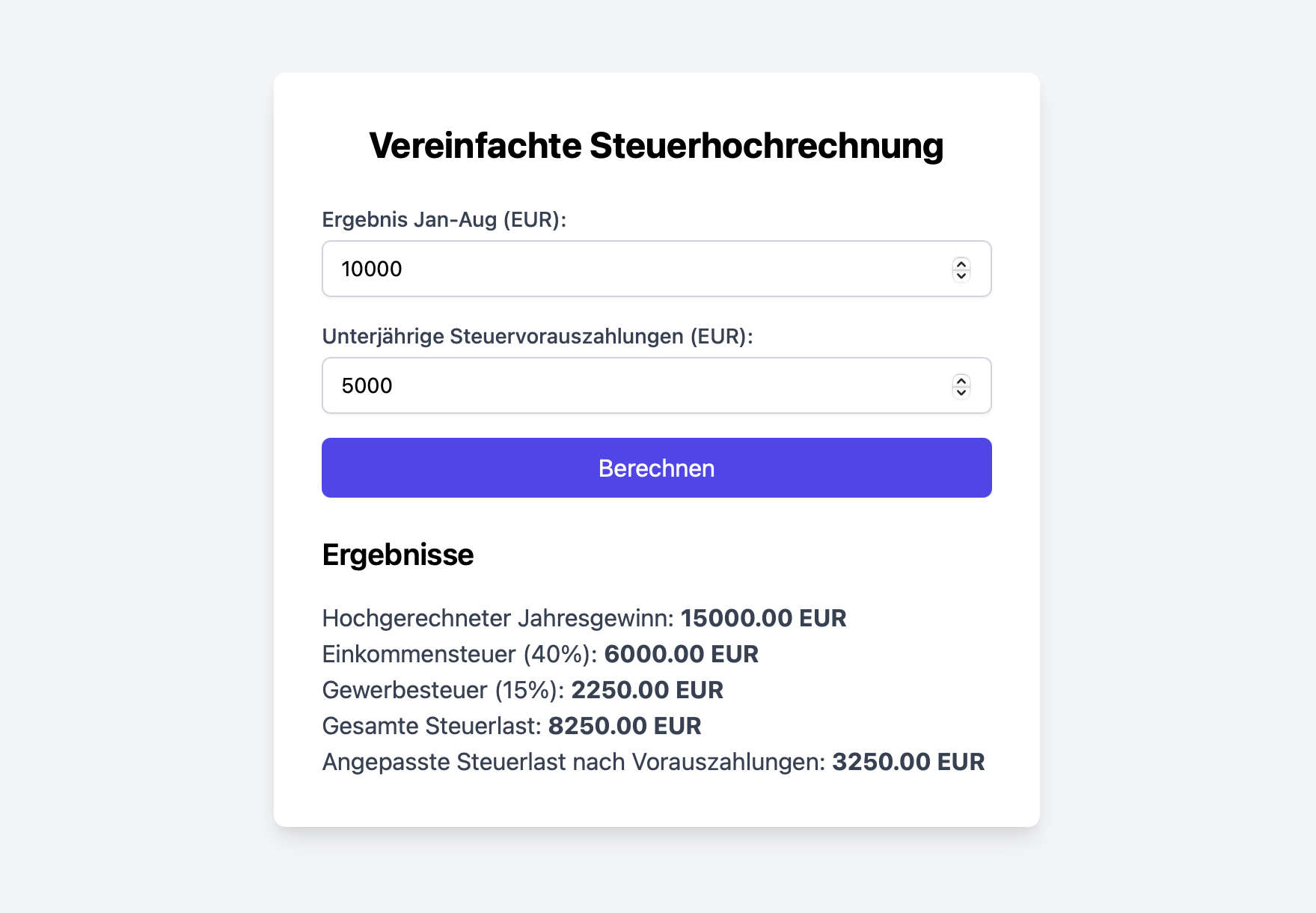 The project was broken down into as many components as possible to clearly separate the input fields from the calculation results. This component-based structure made it easier to make changes to individual parts without affecting the entire application.