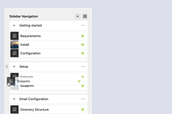 Ein Plugin für das Kirby CMS, das es ermöglicht, Navigationspunkte im Frontend flexibel in Gruppen zu organisieren. Die Struktur basiert auf der Seitenhierarchie (Children), lässt sich jedoch vollständig manuell anpassen.