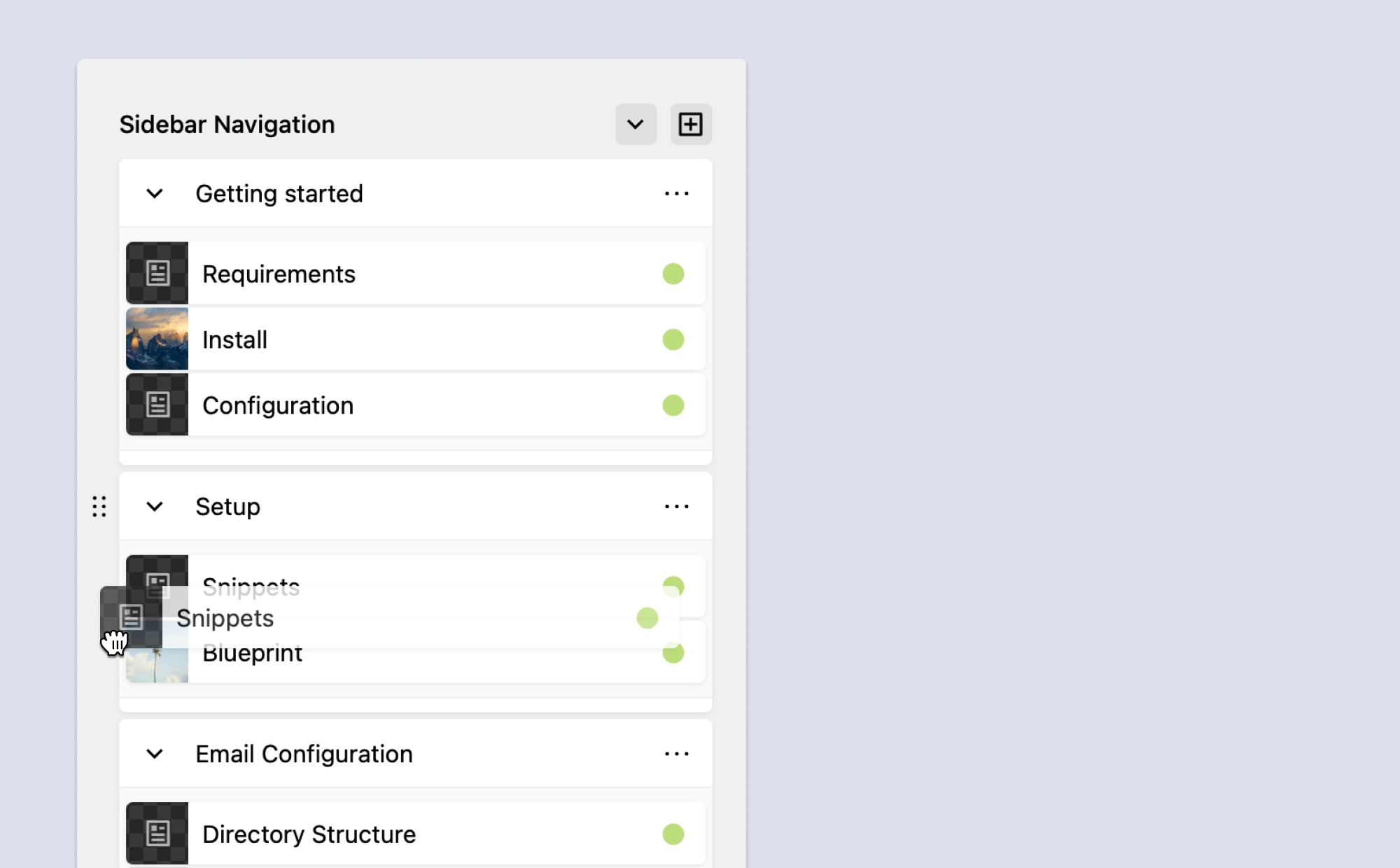 Die intuitive Drag-and-Drop-Oberfläche erlaubt es Nutzern, Seiten einfach zu sortieren und Gruppen zu erstellen. Die Navigation kann dadurch individuell an die Anforderungen jeder Website angepasst werden, ohne an die Seitenhierarchie gebunden zu sein.